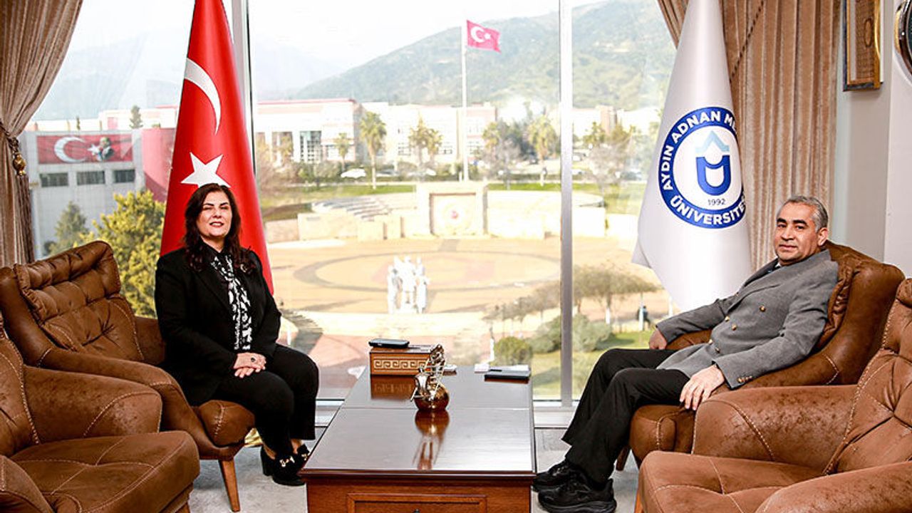 Adnan Menderes Üniversitesi Rektörü Prof Dr. Bülent Kent, Aydın Büyükşehir Belediye Başkanı Özlem Çerçioğlu’nu makamında ağırladı.