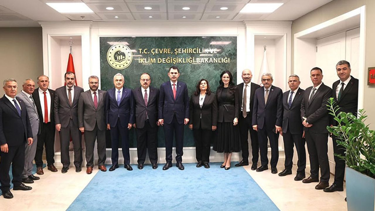 Aydın heyeti, Çevre, Şehircilik ve İklim Değişikliği Bakanı Murat Kurum’u Ankara’da ziyaret etti. Görüşmeye Aydın Valisi Yakup Canbolat, Büyükşehir Belediyesi Başkanı Özlem Çerçioğlu, AK Parti Aydın İl Başkanı Mehmet Erdem, Milletvekilleri Mustafa Savaş, Seda Sarıbaş, Ömer Özmen, MHP Aydın İl Başkanı Haluk Alıcık ile ilçe belediye başkanları katıldı.