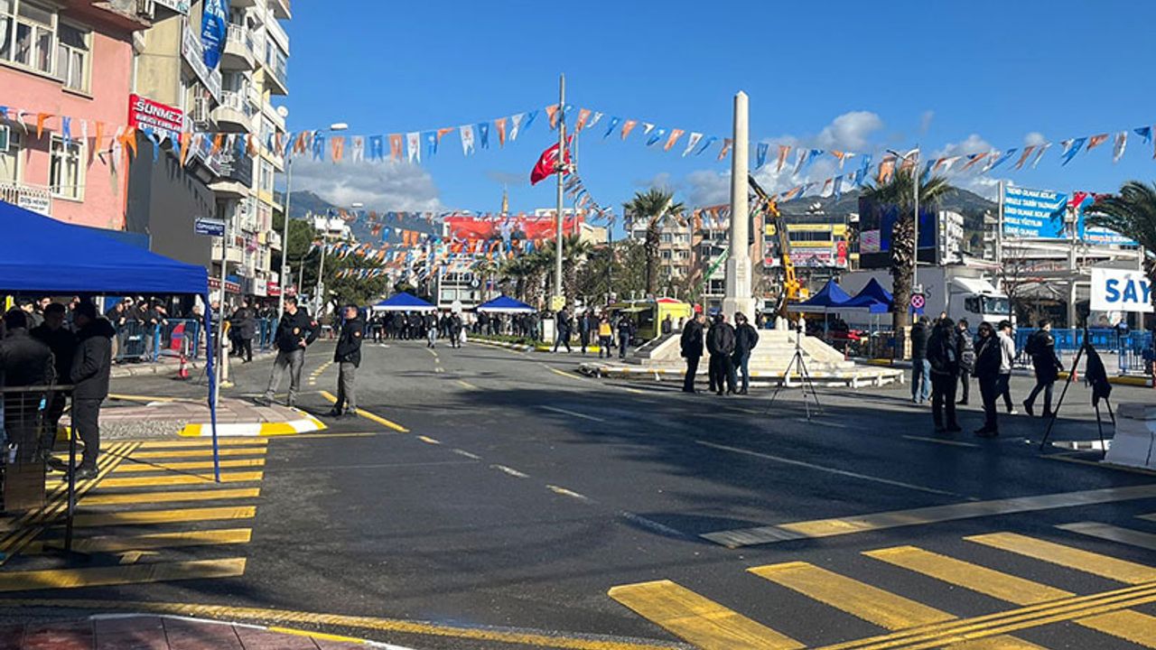 Cumhurbaşkanı Recep Tayyip Erdoğan, başta şehir hastanesi ve tamamlanan diğer yatırımların açılışını gerçekleştirmek için Aydın'a geliyor. Cumhurbaşkanı Erdoğan, saat 13.30’da Atatürk Kent Meydanı’nda Aydınlılarla buluşacak. Geniş güvenlik önlemlerinin alındığı meydan çevresinde polis ekipleri tarafından giriş noktalarında üst aramaları ve kimlik kontrolleri gerçekleştiriliyor. Güvenlik kontrolünden geçirilen vatandaşlar, tören alanına yönlendirilirken meydanda hareketlilik giderek artıyor. Kent genelinde düzenlenen tören dolayısıyla çevre yollarında ve meydan çevresinde trafik akışına yönelik tedbirler alınırken, yetkililer vatandaşlardan güvenlik kurallarına uymalarını ve görevlilerin yönlendirmelerini dikkate almalarını istedi.