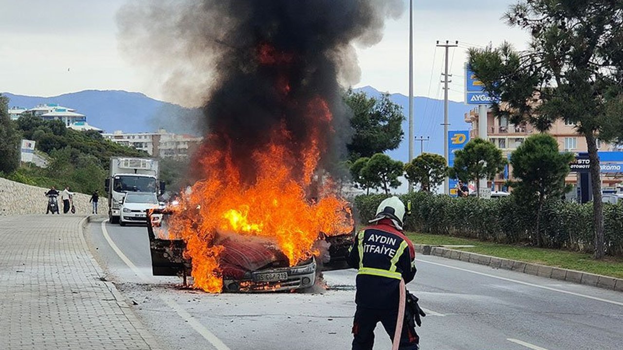 Olay, Kuşadası ilçesi Süleyman Demirel Bulvarı üzerinde meydana geldi. Edinilen bilgiye göre, seyir halindeki 35 CBP 219 plakalı otomobilin sürücüsü E.E., motor kısmından yükselen dumanları fark edince aracını durdurarak 112 Acil Çağrı Merkezi'ne ihbarda bulundu. O esnada araçtan alevler yükseldi. Kısa sürede büyüyen alevler aracı tamamen sardı. İhbar üzerine bölgeye sevk edilen itfaiye ekiplerinin müdahalesiyle yangın söndürüldü. Ekipler soğutma çalışması gerçekleştirirken, otomobil kullanılamaz hale geldi.