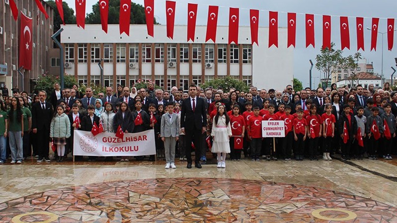 Türkiye Büyük Millet Meclisi’nin kuruluşunun 106. yıldönümü ve 23 Nisan Ulusal Egemenlik ve Çocuk Bayramı dolayısıyla ilk olarak Aydın Valiliği önündeki Atatürk büstüne İl Milli Eğitim Müdürlüğü tarafından çelenk sunuldu. Saygı duruşu ve İstiklal Marşı'nın okunmasının ardından program son buldu. 23 Nisan kutlamaları Mimar Sinan Kapalı Spor Salonu'ndaki kutlama töreni ile ve gün boyunca sürecek diğer etkinliklerle devam edecek.