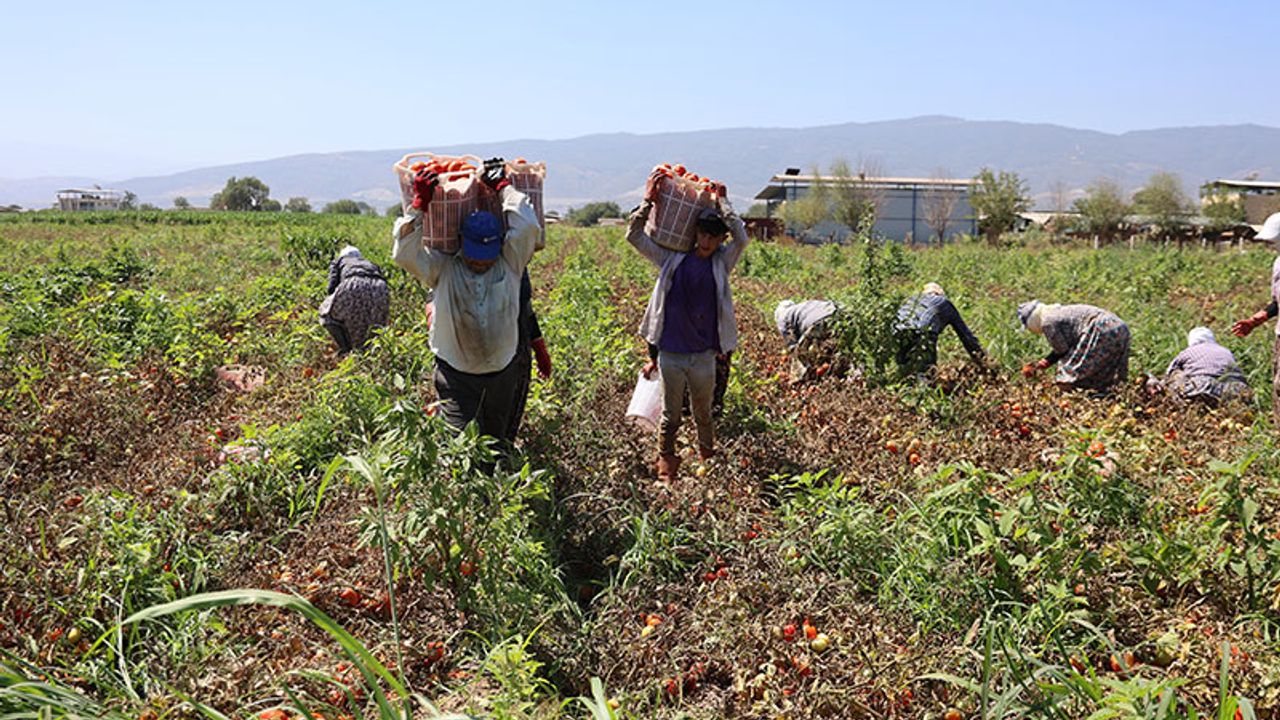 Tarlada hasat yapan işçilerden Hülya Aydın, "Sabah 06.00'da tarlaya gelip işe başlıyoruz. Hava çok sıcak olduğu için öğlen saatlerinde bırakıyoruz. Güneş yükseldikçe çalışmak daha da zorlaşıyor, nefes almak bile güçleşiyor. Ama ekmeğimizi buradan kazanıyoruz, mecburuz. Emekliliğimiz yok, günlük yevmiye için çalışmak zorundayız. Domatesin dikiminden çapalama ve toplamaya kadar her aşamada biz varız" dedi.