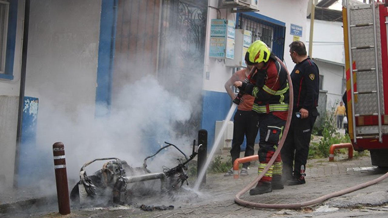 Yangın, Efeler ilçesi Köprülü Veysipaşa Mahallesi 1602 Sokak üzerinde meydana geldi. Edinilen bilgiye göre Y.Ş.'nin evinin önünde tamir ettiği elektrikli motosiklet, henüz bilinmeyen bir nedenle alev aldı. Kısa sürede büyüyen alevler motoru sararken, ihbar üzerine bölgeye polis ve itfaiye ekipleri sevk edildi. Kısa sürede olay yerine gelen itfaiye ekipleri, alevlere müdahale etti. Yangın esnasında oluşan yoğun duman mahalleyi sararken, yangın eve sıçramadan söndürüldü. Ekipler soğutma çalışması gerçekleştirirken, olayla ilgili inceleme başlatıldı.