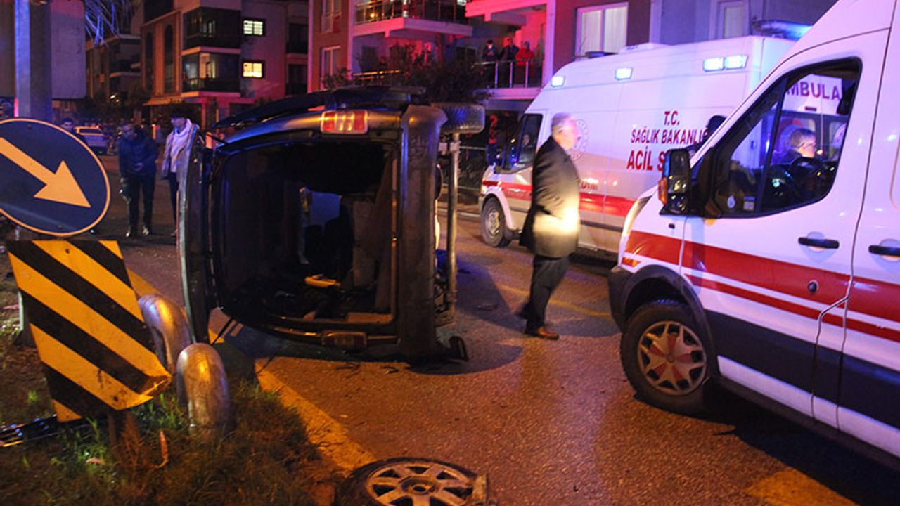 Edinilen bilgiye göre, 09 ANA 541 plakalı otomobil ile 09 APF 005 plakalı ticari araç henüz bilinmeyen bir nedenle çarpıştı. Çarpışmanın etkisi savrulan ticari araç refüjdeki trafik levhalarına çarparak yan yattı.