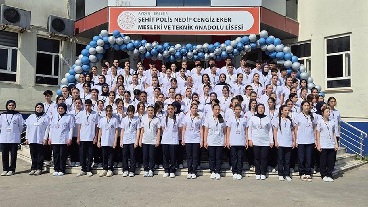 Aydın’ın Efeler ilçesinde bulunan Şehit Polis Nedip Cengiz Eker Mesleki ve Teknik Anadolu Lisesi Sağlık Hizmetleri alanı 11’inci sınıf öğrencileri, staj öncesi düzenlenen törenle yemin ederek mesleki hayatlarına ilk adımlarını attı. Genç sağlıkçılar, heyecan ve gururun bir arada yaşandığı törenle, staj sürecine resmi olarak başladı.