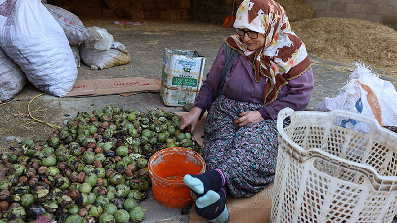 Aydın'ın Köşk ilçesinde ceviz hasadında sona yaklaşılırken, üreticiler topladıkları cevizleri kabuklarından ayırarak satışa hazırlıyor. Köşk ilçesinin kuzey kesimlerinde yer alan köylerde ceviz hasadı tüm hızıyla sürüyor. Yayla köylerinde yaşayan üreticiler, incir ve zeytinle birlikte en önemli geçim kaynaklarından biri olan cevizleri geleneksel yöntemlerle işliyor. Ağaçlardan sırıklarla düşürülen cevizler kadınlar tarafından toplanarak gölgede dinlendiriliyor. Ardından yeşil kabukları soyulan cevizler yıkanıp kurutularak satışa hazır hale getiriliyor. Yılların tecrübesiyle cevizlerin iç kısmına zarar vermeden soyulan kabuklar bir yanda birikirken, cevizler de pazarlarda yerini almak için hazırlanıyor.