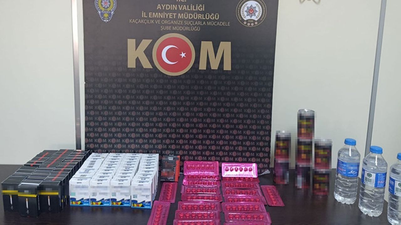 Aydın İl Emniyet Müdürlüğü ekiplerinin halk sağlığını tehdit eden ve vergi kaybına yol açan kaçakçılıkla mücadele çalışmaları aralıksız sürüyor. Edinilen bilgiye göre, Aydın İl Emniyet Müdürlüğü Kaçakçılık ve Organize Suçlarla Mücadele Şube Müdürlüğü ekipleri tarafından Köprülü Veysi Paşa Mahallesi Batı Gazi Bulvarı üzerindeki bir iş yerinde arama gerçekleştirildi. Yapılan aramada cinsel içerikli olduğu değerlendirilen 114 adet hap, 7 kutu içecek ve 280 adet jel ile 720 adet tütün doldurulmuş makaron ve 1,5 litre ev yapımı alkollü içki ele geçirildi. Olayla ilgili G.Ö. hakkında Kaçakçılıkla Mücadele Kanunu’na muhalefet suçundan adli işlem başlatıldı.