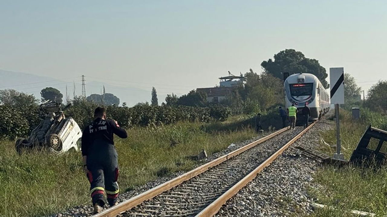 Aydın’da trenin çarptığı kamyonet ikiye bölündü