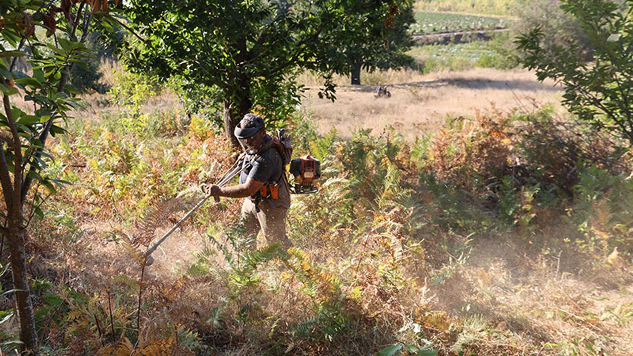 Aylardır yağmur bekleyen kestane üreticisi Eylül ayının son haftasında sezonun ilk yağmuru düşünce bahçelerde temizlik çalışması yaptı.