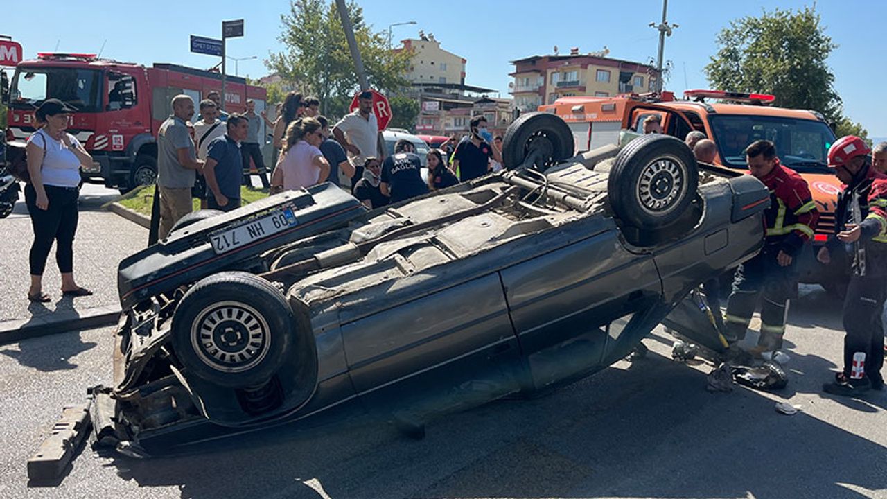 Aydın'ın Efeler ilçesinde ani fren yapan araca çarpmamak için manevra yapan otomobil refüje çıkarak takla attı. Kazada 2 kişi yaralandı.