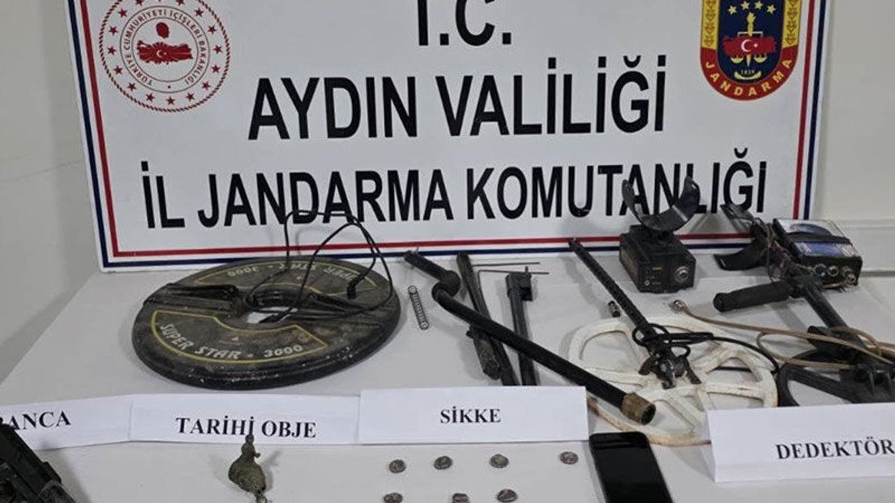 Aydın İl Jandarma Komutanlığı Karacasu İlçe Jandarma Komutanlığı ekiplerince Yaykın Mahallesi'nde İ. D. (63) isimli kişinin evinde arama yapıldı. Yapılan aramada 7 adet Athena gümüş Yunan sikkesi olduğu değerlendirilen tarihi obje, 1 adet minyatür heykel, 3 adet dedektör, 1 adet tabanca ve şarjörü, 1 adet cep telefonu ele geçirildi.