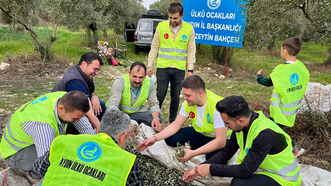 Aydın Ülkü Ocaklarından yapılan açıklamada, "Ülkü Ocakları Aydın İl Başkanlığı olarak, Çine ilçemizde faaliyete geçirdiğimiz zeytin bahçemizde ilk hasadımızı gerçekleştirdik.
