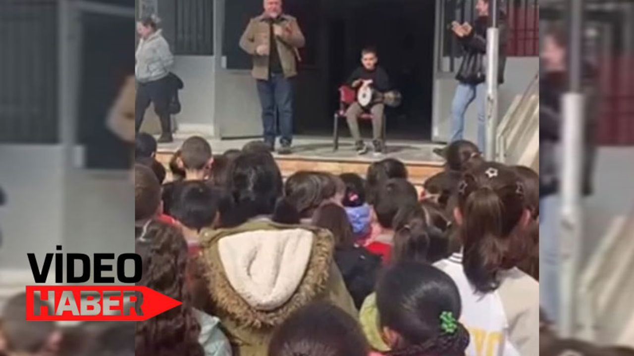 Bu kapsamda, bu hafta ‘Mavi boncuk’ adlı şarkıyla eğlenen öğrencilerin görüntüleri, beğeni topladı. İlkokul öğretmeni Gökhan Kayhan ile birlikte darbukayla ritim tutarak hep bir ağızdan şarkıyı seslendiren öğrenciler, yürekleri ısıttı.