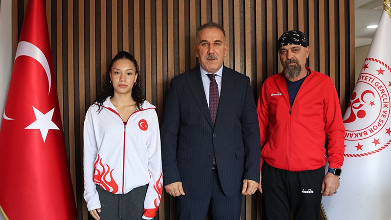 Dünya Jiujitsu Şampiyonası, 8-15 Kasım tarihlerinde Tayland’da düzenlenecek. Şampiyona için milli takım hazırlıkları da tamamlanırken, Aydınlı milli sporcu Mina İnce de şampiyonada mindere çıkacak. Dünya şampiyonasında Türkiye'yi temsil edecek olan İnce, milli takım kafilesine katılmadan önce Aydın Gençlik ve Spor İl Müdürü Serhat Yığmatepe'yi ziyaret etti. Türkiye'yi başarılı bir şekilde temsil etmek istediğini ifade eden Aydınlı milli sporcu, şampiyonaya sıkı bir şekilde hazırlandıklarını ifade etti. Müdür Yığmatepe de, başarılı sporcuyu tebrik ederek şampiyonada başarılar diledi.