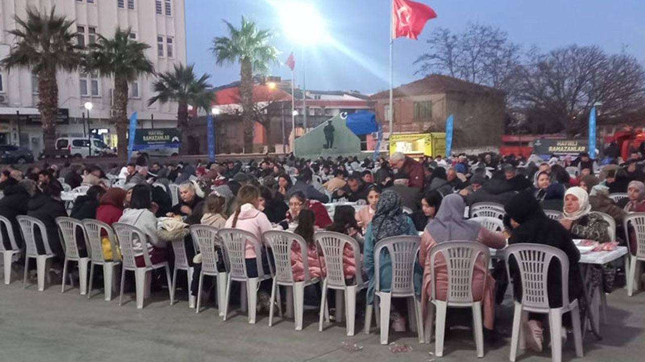 Aydın Büyükşehir Belediyesi'nin iftar sofralarında bir araya gelen vatandaşlar, dualarla oruçlarını açtı.