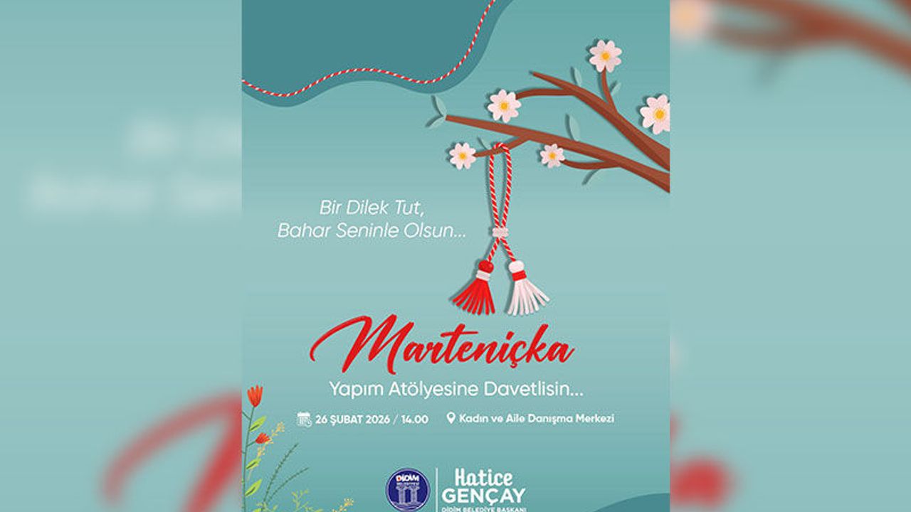 26 Şubat 2026 Perşembe günü saat 14.00’te, Didim Belediyesi Kadın ve Aile Danışma Merkezi’nde gerçekleştirilecek “Marteniçka Yapım Atölyesi” ile kırmızı ve beyaz iplerin umut, sağlık ve bereketi simgelediği bu anlamlı gelenek yeniden hayat bulacak.