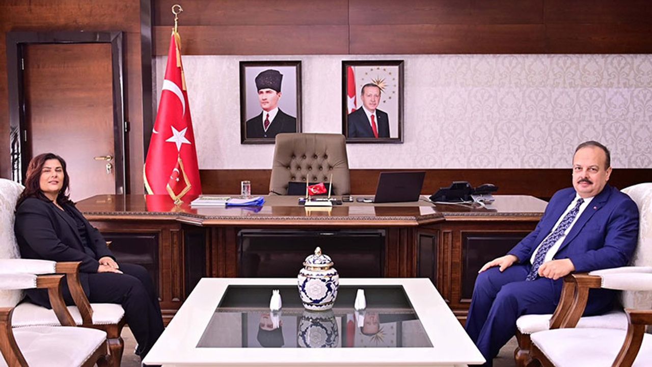 Aydın Büyükşehir Belediye Başkanı Özlem Çerçioğlu, Aydın Valisi Yakup Canbolat'ı makamında ziyaret etti.