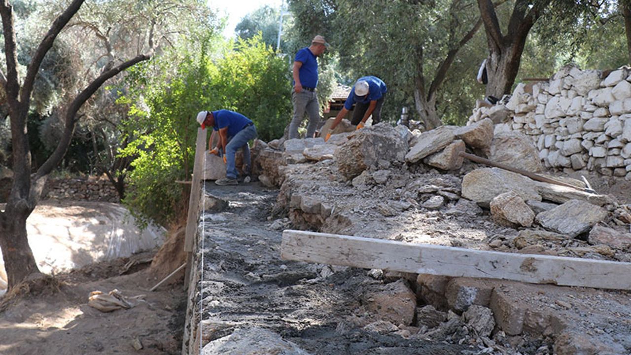 Aydın'ın Bozdoğan ilçesinde çalışmalarını sürdüren belediye ekipleri, Çamlıdere Mahallesi'ndeki riskli yollarda istinat duvarı yaparken, deforme olan okul bahçe duvarını da yeniledi.