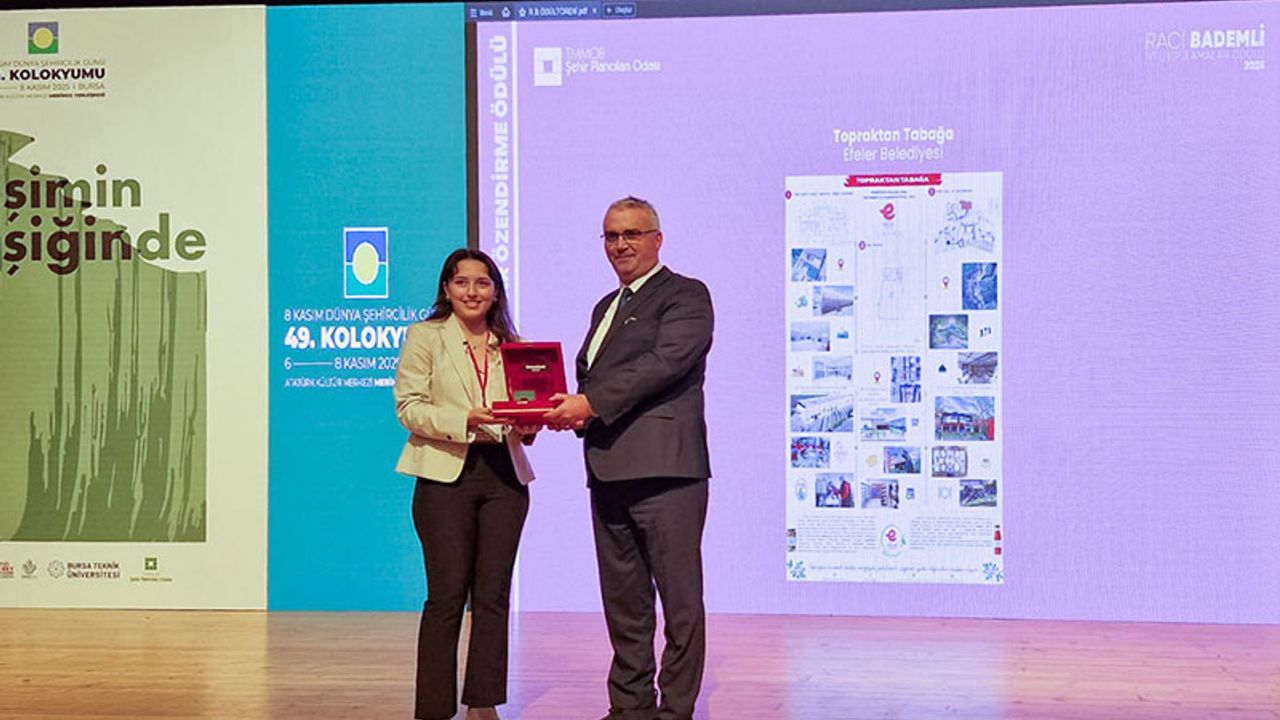 Türk Mühendis ve Mimar Odaları Birliği (TMMOB) Şehir Plancıları Odası tarafından verilen Raci Bademli İyi Uygulamalar Özendirme Ödülü, Efeler Belediye Başkan Yardımcısı Barış Altıntaş tarafından teslim alındı.