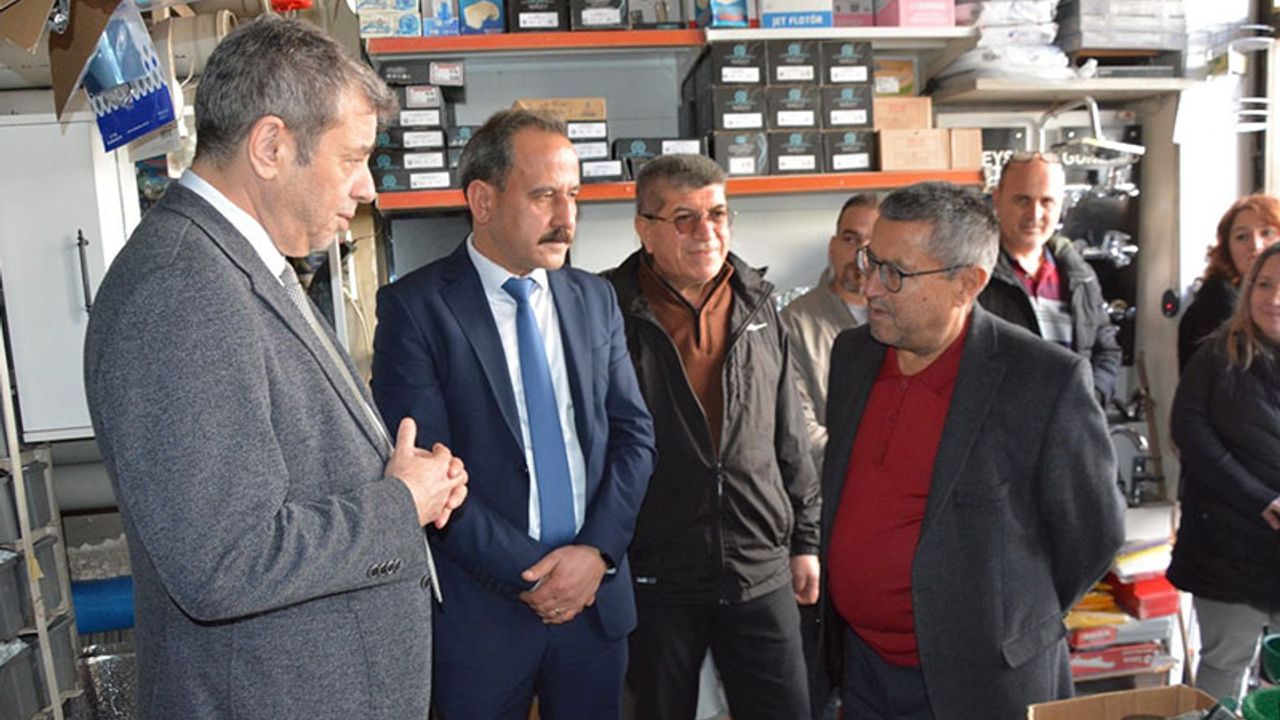 Aydın Esnaf ve Sanatkarlar Odaları Birliği (AYESOB) Başkanı Muhammet Ali Künkcü, Kuyucak Esnaf ve Sanatkarlar Odası Başkanı Mustafa Ali Kocadağ ve yönetim kurulu üyeleriyle birlikte Kuyucak’ta çarşı ve sanayi esnafını ziyaret etti.