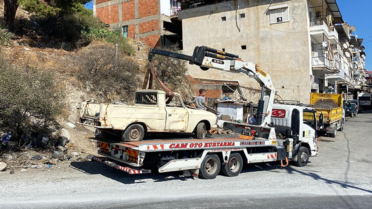 Bozdoğan Belediyesi, ilçe genelinde görüntü kirliliği oluşturan hurda araçların kaldırılması için çalışma başlattı.