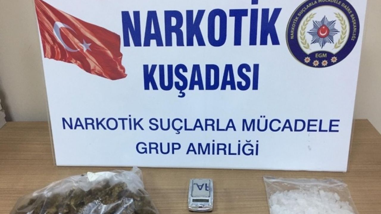 Edinilen bilgiye göre, Kuşadası Emniyet Müdürlüğü Narkotik Suçlarla Mücadele Grup Amirliği’ne bağlı ekipler, Davutlar’da bir evde uyuşturucu madde satıldığı yolunda ihbar aldı. Söz konusu evi fiziki takibe alan narkotik ekipleri, gece yarısı saat 00:15 sıralarında evin çevresinde M.B. isimli bir şüpheliyi durdurdu. Yapılan üst aramasında 1.43 gram Skunk Esrar Maddesi ele geçirilen M.B. gözaltına alındı. Narkotik ekipleri, ardından ise söz konusu eve operasyon düzenlendi. Operasyonda evde bulunan M.K. isimli şüpheli gözaltına alınırken, evde yapılan yapılan aramalarda 5 Adet Extasy uyuşturucu hap, 52 gram kristal olarak tabir edilen metamfetamin uyuşturucu madde, 58 gram skunk esrar maddesi ve 1 adet hassas terazi ele geçirildi. Operasyonda gözaltına alınan M.B. ve M.K. isimli şüpheliler soruşturma için Kuşadası Emniyet Müdürlüğü’ne götürüldü.