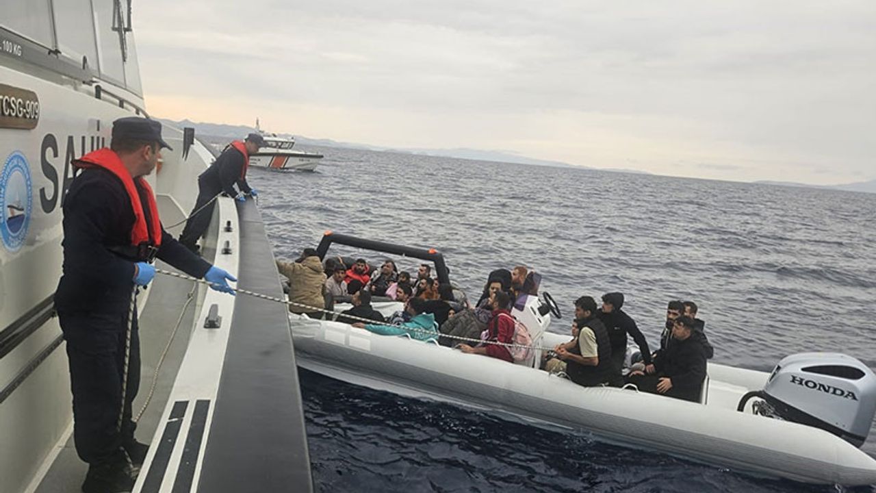 Aydın'ın Didim ilçesi açıklarında Yunanistan tarafından geri itilen 9'u çocuk 36 düzensiz göçmen kurtarıldı.