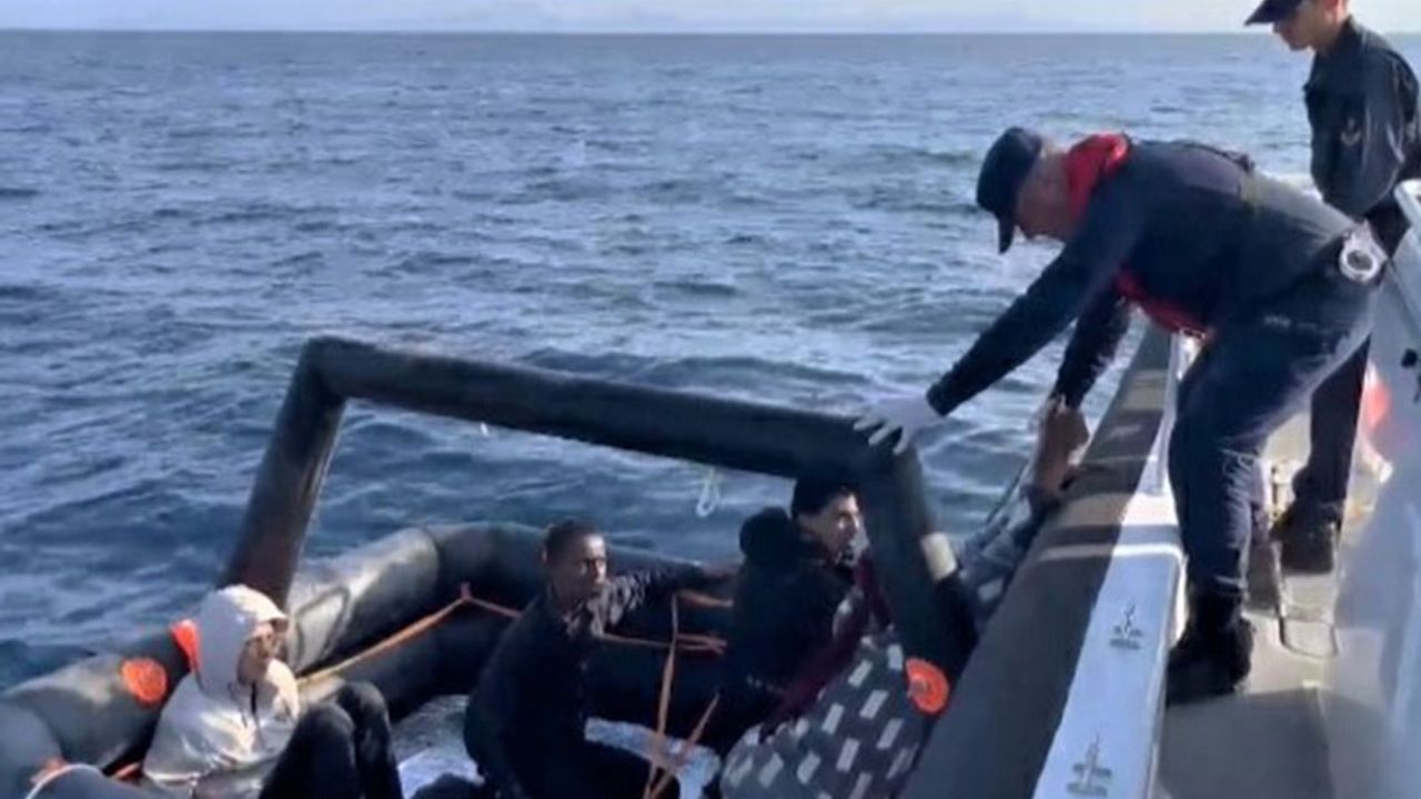 Aydın’ın Didim ilçesinde Yunan unsurları tarafından Türk karasularına geri itilen lastik bottaki 4 düzensiz göçmen kurtarıldı.