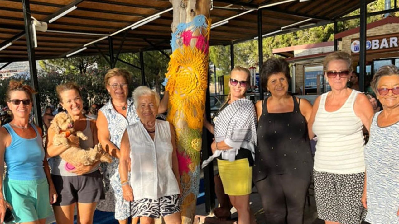 Didim'in Akbük Mahallesi'nde yaşanan kadınlar çevre sorunlarını dikkat çekmek ve farkındalık oluşturmak amacıyla mahalledeki ağaçların gövdelerini yaptıkları rengarenk el örgüsü motiflerle giydirmeye başladı.