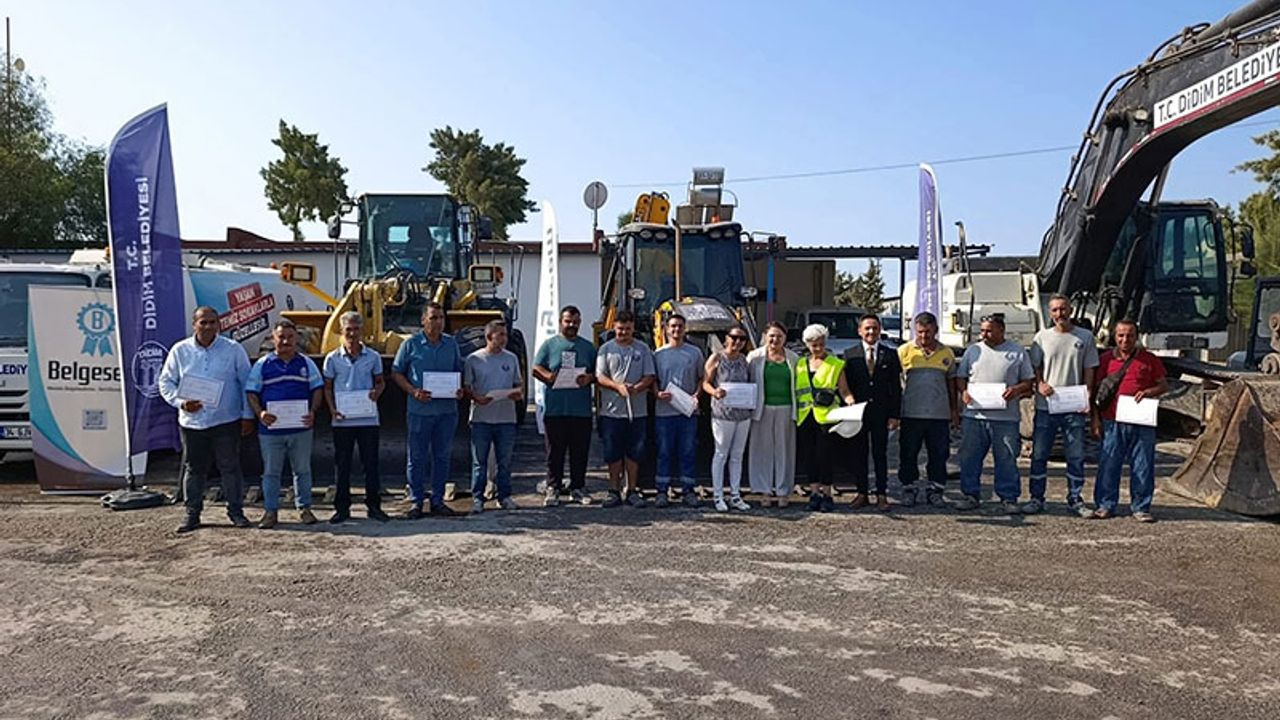 “Didim Belediyesi ile gerçekleştirmiş olduğumuz İş Makineleri Operatörlük eğitimlerimizin ardından adaylarımıza belgelerini teslim etmenin haklı gururunu yaşıyoruz.