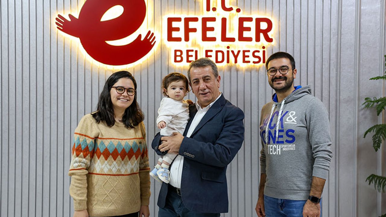 Minik Teoman’ın annesi Yağmur Çiftçi ve babası Enis Talha Çiftçi, kampanya sürecinde verdikleri güçlü destek dolayısıyla Efeler Belediye Başkanı Anıl Yetişkin’i makamında ziyaret ederek teşekkür etti.