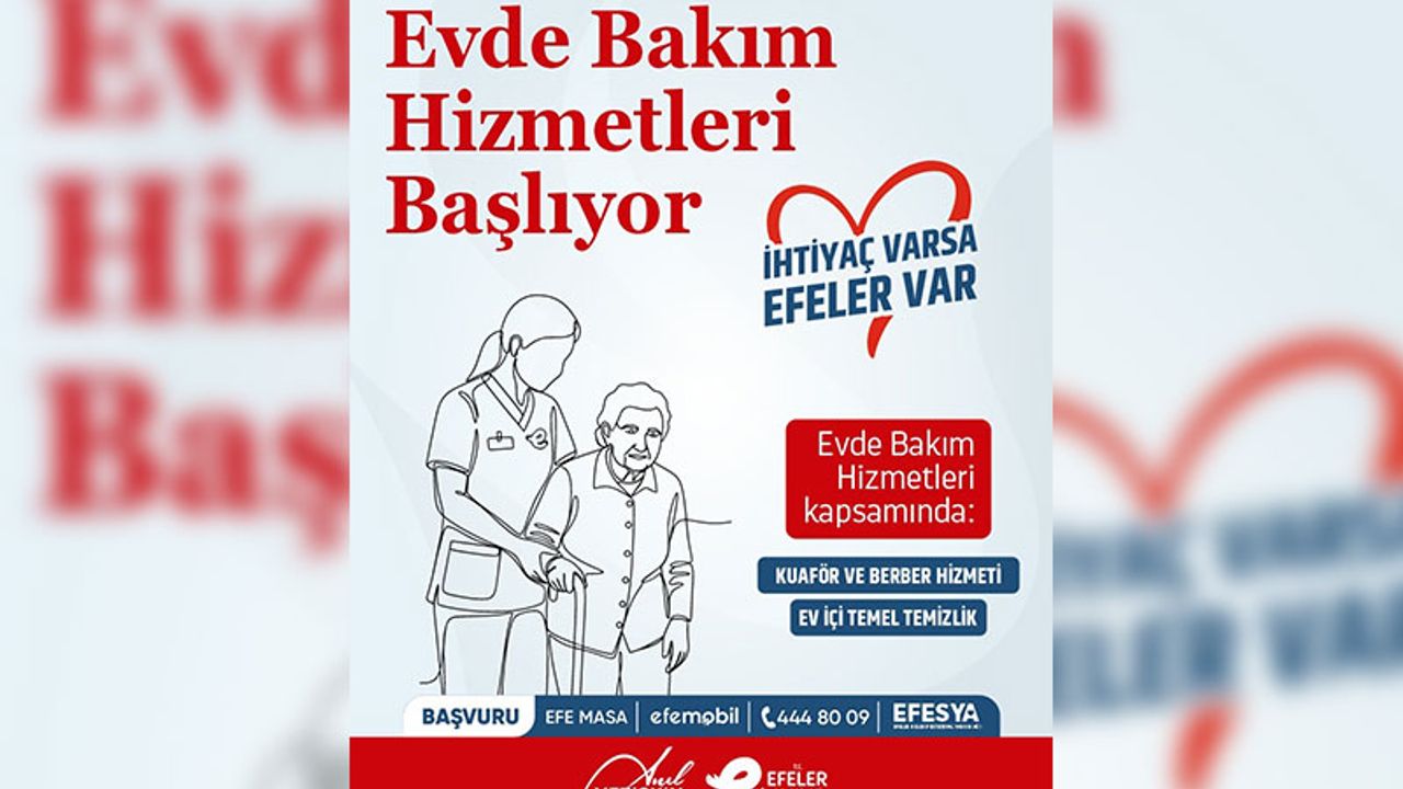 Yeni hizmet kapsamında, günlük yaşam aktivitelerini yerine getirmekte zorlanan ve temel bakım ihtiyaçlarını karşılamakta güçlük yaşayan vatandaşlara evlerinde destek sağlanacak. EFESYA Evde Bakım Hizmetleri ile saç–sakal tıraşı, kişisel bakım ve ev içi temel temizlik hizmetlerinin sunulması planlanıyor. Proje, sosyal destekten yoksun kalan bireylerin yaşamını kolaylaştırmayı ve insanca yaşam koşullarını güçlendirmeyi hedefliyor.