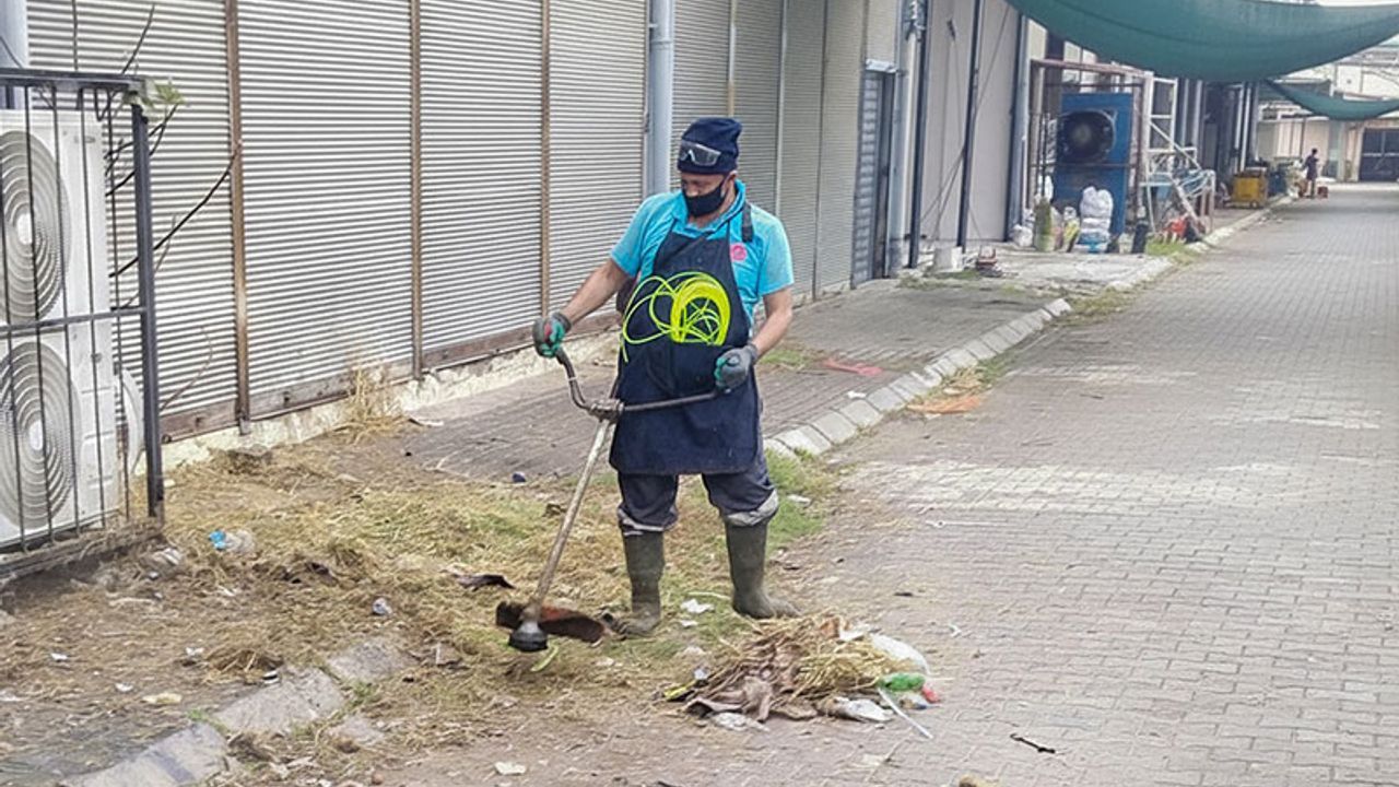 Şehrin önemli ticaret merkezlerinden biri olan Gıda Çarşısı’nda başlatılan temizlik çalışmaları kapsamında bölgedeki tüm cadde, sokak ve kaldırımlarda detaylı bir temizlik operasyonu gerçekleştiriliyor. Ekipler, alandaki uzayan çimleri ve yabani otları biçiyor. Bu işlemlerin ardından bölge araçların da yardımıyla süpürülüyor.