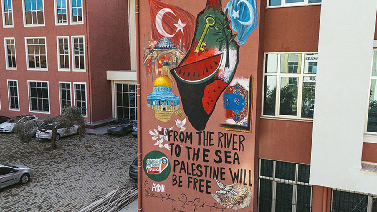 Aydın Adnan Menderes Üniversitesi’nde (ADÜ) öğrenciler, İsrail’in Gazze’ye yönelik saldırılarını protesto etmek ve Filistin halkına destek olmak amacıyla anlamlı bir çalışmaya imza attı. Aydın Gençlik ve Spor İl Müdürlüğü’nün destekleriyle hayata geçirilen proje çerçevesinde gençler kampüs duvarlarını boyadı. Gençlik ve Spor Bakanlığı tarafından yürütülen Ünides Programı 5. Etap kapsamındaki proje destek programı doğrultusunda gerçekleştirilen çalışma, ADÜ Üniversite Aktif Gençlik Topluluğu tarafından organize edildi. Siyasal Bilgiler Fakültesi Dekanlığı’nın duvarına yapılan muralda Filistin’e destek mesajları içeren çeşitli sembollere yer verildi.