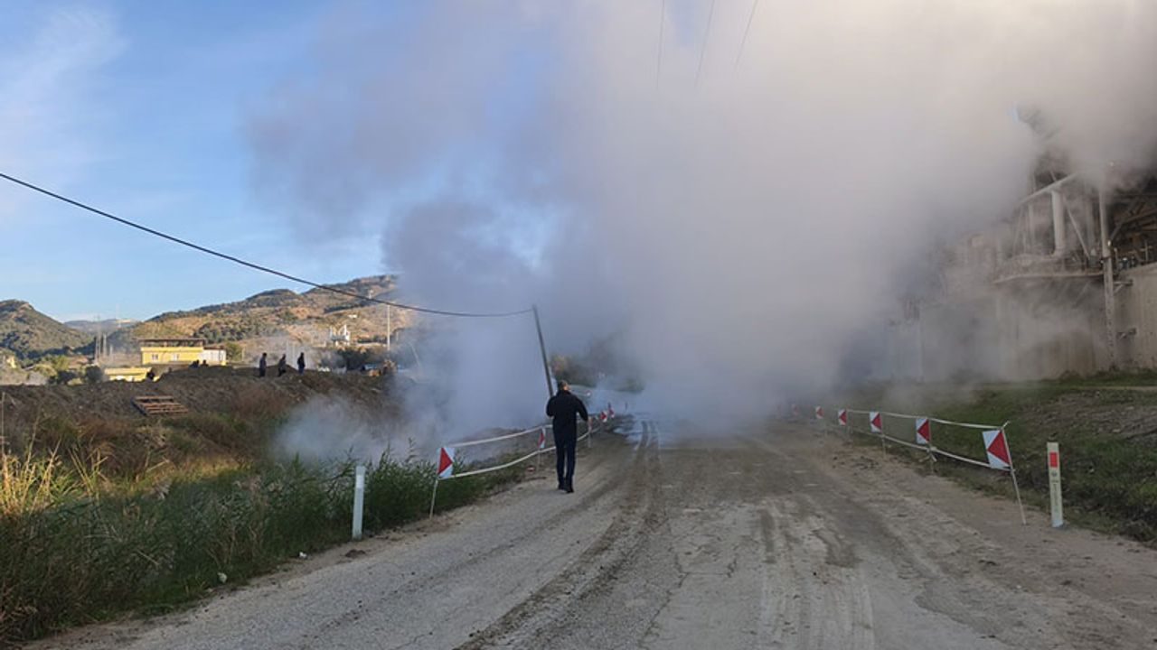Aydın’ın Germencik ilçesinde jeotermal akışkan iletim hattındaki boruda patlama olurken, Germencik-Bozköy karayolu trafiğe kapatıldı.