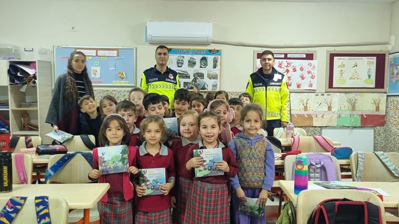 Aydın’ın Sultanhisar ilçesi Savatlı Mahallesi'ndeki Salavatlı İlkokulu'nda jandarma trafik ekipleri öğrencilere yönelik trafik eğitimi verdi.