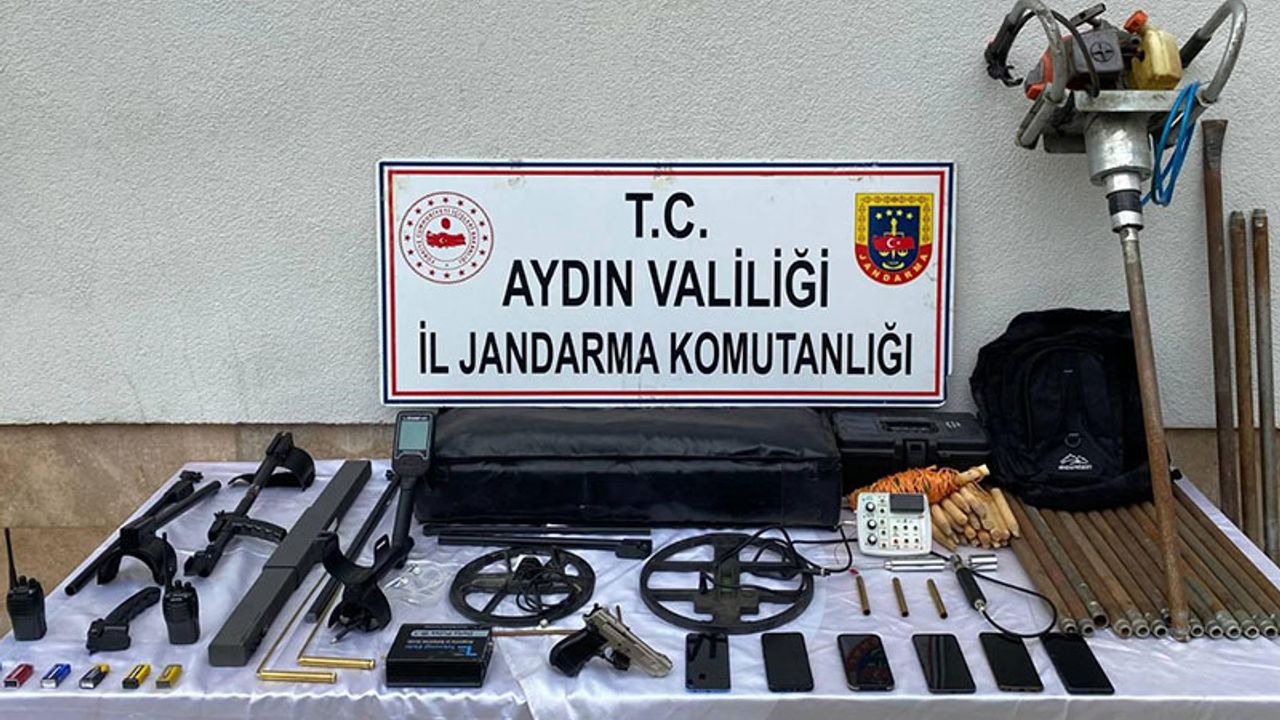 Aydın İl Jandarma Komutanlığı KOM Şube Müdürlüğü, Karpuzlu ve Çine İlçe Jandarma Komutanlığının birlikte yürüttüğü takipli faaliyeti kapsamında, "Kültür ve Tabiat Varlıklarını Koruma Kanununa Muhalefet" suçunu işleyen 6 kişiye eş zamanlı olarak evlerinde arama yapıldı. Yapılan aramalarda 1 adet tabanca, 1 adet karot sondaj makinesi, 1 adet zemin etüt maden araştırma cihazı takımı, 1 adet alan tarama cihazı takımı, 19 adet 70 cm.’lik karot sondaj çubuğu, 3 adet alan tarama çubuğu, 2 adet dedektör takımı, 18 adet zemin etüt kazığı, 2 adet el telsizi, 1 adet demir kötürge, 6 adet cep telefonu ve muhtelif kazı aletleri ele geçirildi. Şüpheliler hakkında adli işlemlere başlanıldığı öğrenildi.