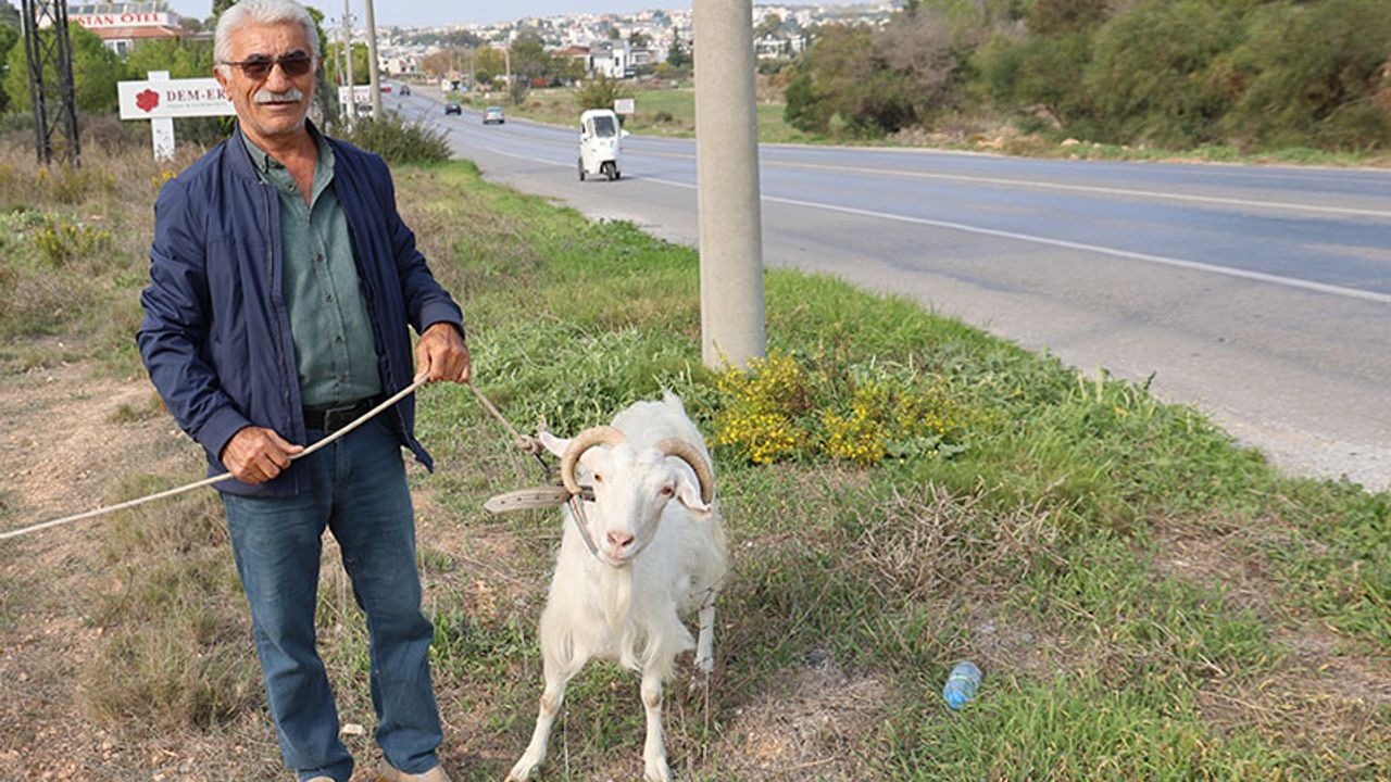 Aydın'ın Didim ilçesine Çorum'dan tatile gelen 71 yaşındaki Aslan Arslan, tatilde köy hayatını özleyince keçi edindi.