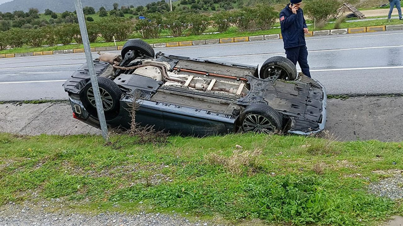 Aydın-Muğla Karayolu üzerinde yağış sebebiyle kayganlaşan yolda kontrolden çıkan otomobil ters döndü, kazada 1 kişi yaralandı.