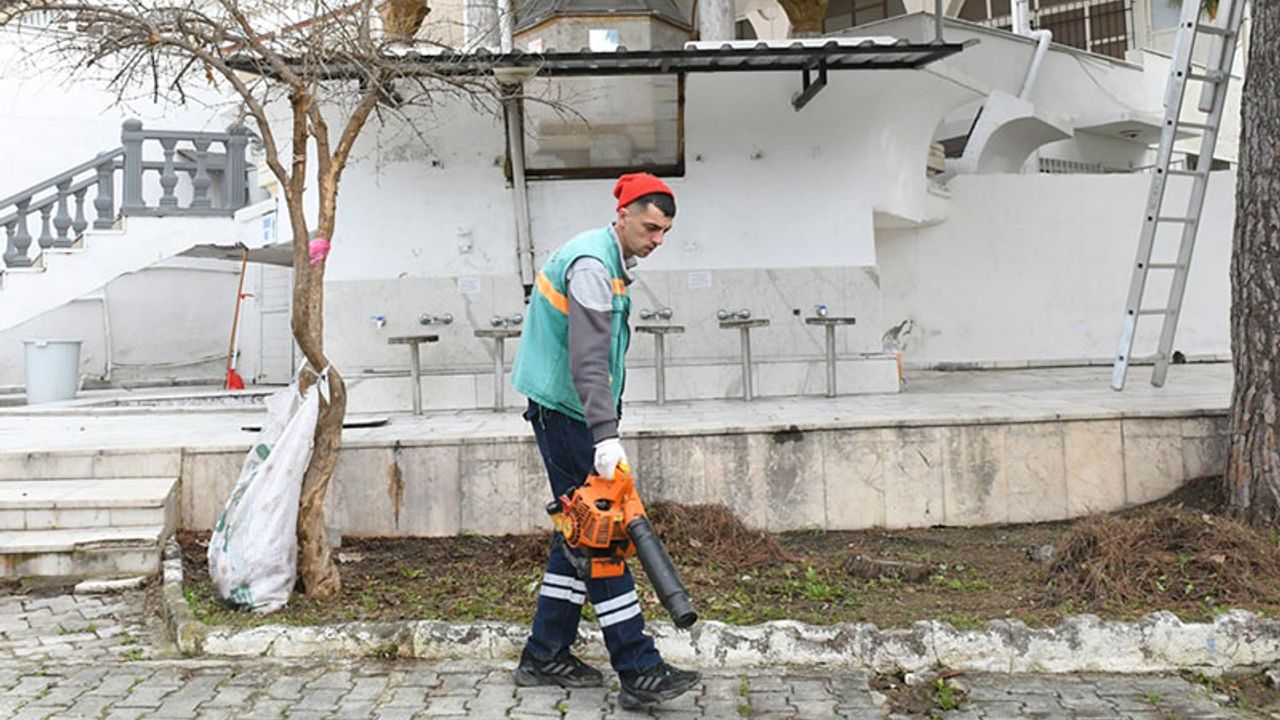Sabahın erken saatlerinden itibaren sahada görev yapan Kuşadası Belediyesi ekipleri, vatandaşların temiz, bakımlı ve huzurlu ortamlarda ibadetlerini yerine getirebilmesi için çalışmalarını özveri ile sürdürüyor.