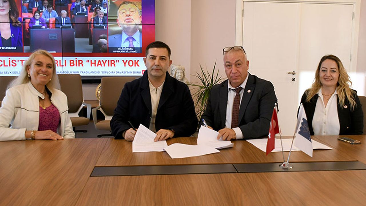 İmza töreninde konuşan Başkan Ömer Günel, “Sözleşmemizin tüm mesai arkadaşlarıma hayırlı ve uğurlu olmasını diliyorum” dedi.