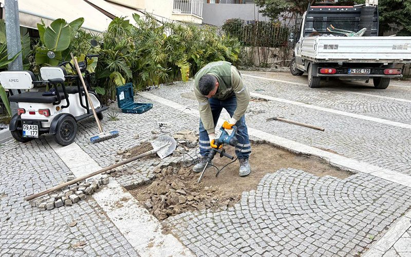 Kuşadası Belediyesi Fen İşleri Müdürlüğü, Değirmendere Mahallesi’nde başlattığı üst yapıyı yenileme çalışmalarını sürdürürken kent genelinde meydana gelen sorunları da en kısa süre içerisinde gidermek için yoğun mesai yapıyor. Bu kapsamda farklı mahallelerde kaldırım, asfalt, bordür ve yol çalışmaları yapan ekipler, belirlenen programın yanı sıra Güvercin Masaya yapılan başvurular doğrultusunda da acil müdahale gerektiren bakım ve onarım işlerini vakit kaybetmeksizin çözüyor. Ekipler son olarak Türkmen, Davutlar ve Ege mahalleleri ile tarihi Tabakhaneler Sokağı’nda çalışma gerçekleştirdi. Kent sakinleri, gösterilen özveri ve duyarlılık için ekiplere teşekkür etti.
