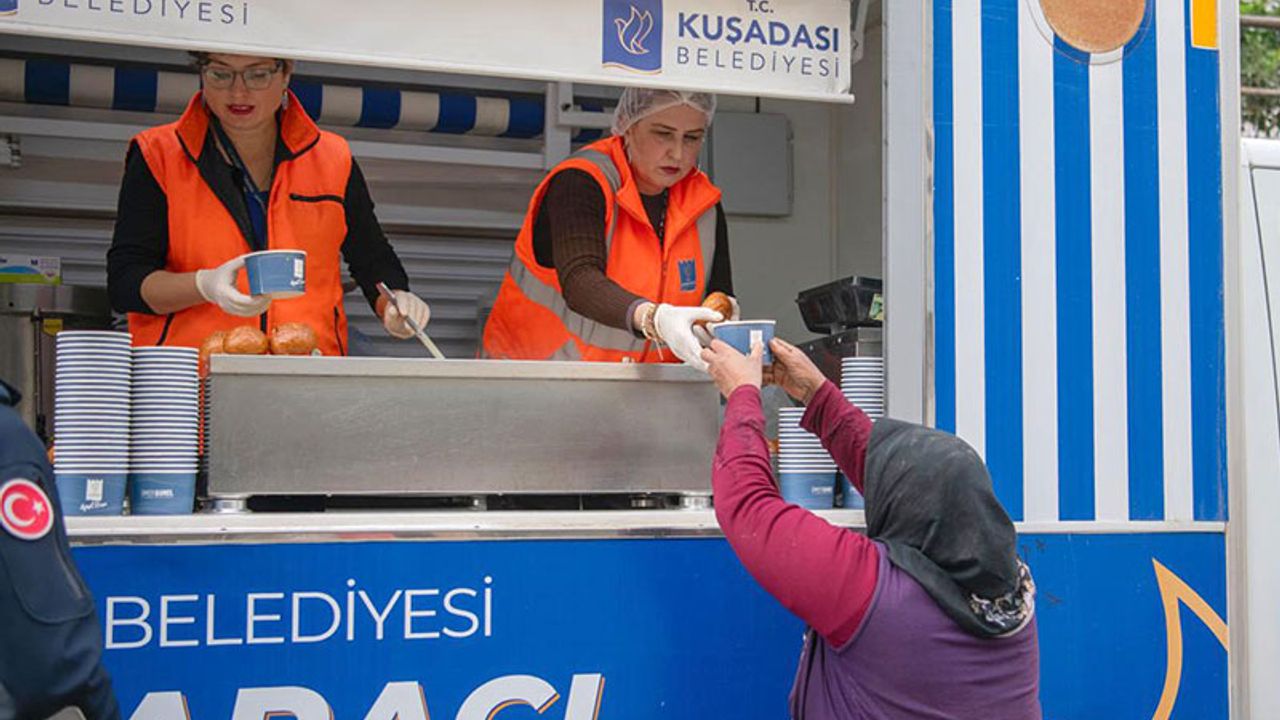 Sabahın erken saatlerinde yapılan çorba ikramıyla Kuşadalıların içleri ısındı.