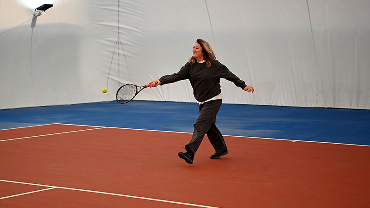 Balon kortu kullanan sporseverler kış aylarında da olumsuz hava koşullarından etkilenmeden rahatça tenis oynayabiliyor.