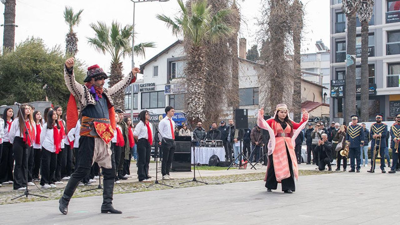 Törende, Ulu Önder Gazi Mustafa Kemal Atatürk ve şehitler anısına saygı duruşunda bulunuldu ve İstiklal Marşı okundu. Ardından Kaymakam İbrahim Keklik, Kuşadası Belediye Başkan Vekili Tümer Apaydın ve protokol üyeleri Atatürk Anıtı’na çelenk sundu. Törende günün anlam ve önemine ilişkin konuşmayı yapan Kuşadası Sahil Güvenlik Komutanı Binbaşı Ömer Serhat Uysal, "Çanakkale Destanı’nın 111’inci yıl dönümünde başta Çanakkale kahramanları olmak üzere bu topraklar için hayatını feda eden tüm şehitlerimizi minnetle anıyorum” dedi.