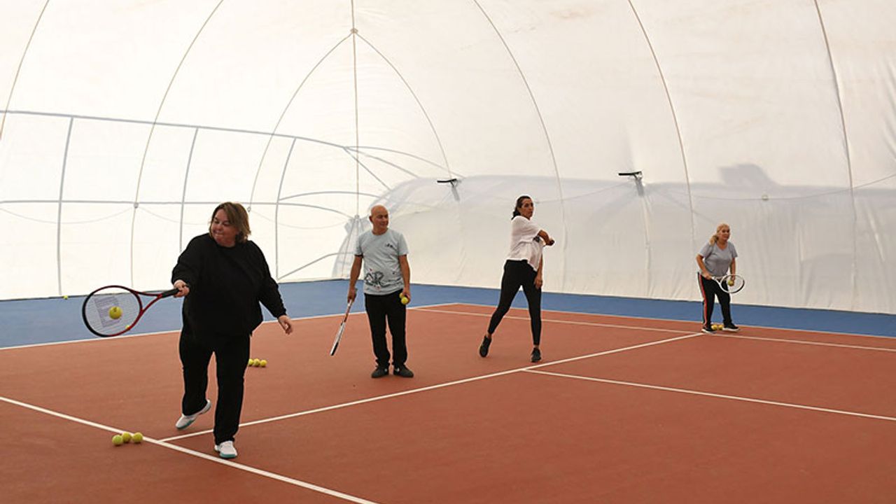 Bu kapsamda Kuşadası Tenis Kulübü’nde emeklilere yönelik açılan ücretsiz tenis kursu yoğun ilgi görüyor.
