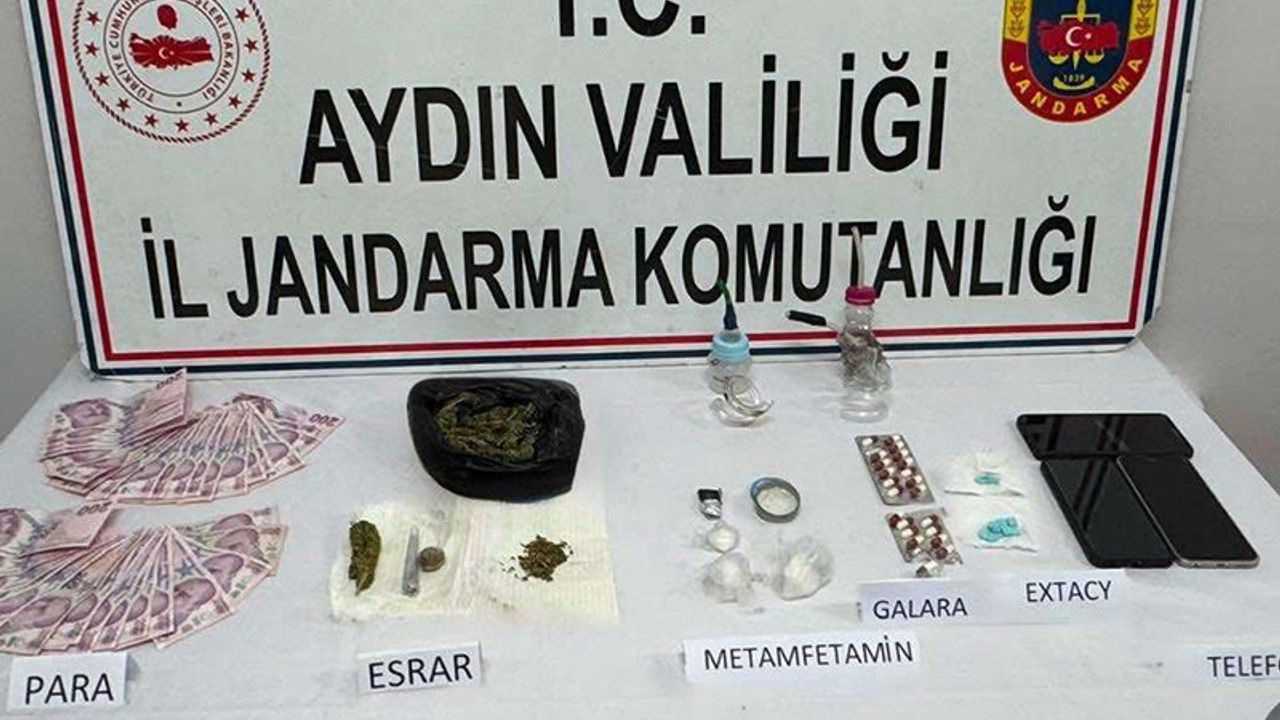 Aydın'da jandarma ekipleri uyuşturucu madde kullanımı ve ticaretinin önlenmesine yönelik çalışmalarını aralıksız sürdürüyor. Edinilen bilgiye göre, Nazilli İlçe Jandarma Komutanlığı tarafından uyuşturucu madde satıcısı ve kullanıcılarına yönelik çalışmalar kapsamında A.Ç. (48) isimli erkek ve G.K. (45) isimli kadın şüphelilerin yakalanması için operasyon düzenlendi. Düzenlenen operasyonda şüpheliler kıskıvrak yakalanarak gözaltına alınırken, şüphelilerin aracında ve evinde yapılan adli aramada; 6 adet paketlenmiş satışa hazır 18 gram metamfetamin, 3 adet paketlenmiş satışa hazırlanmış 33 gram kubar esrar, 31 adet sentetik hap, 2 adet uyuşturucu kullanma aparatı, 1 adet içime hazırlanmış sigara ve 3 adet cep telefonu ile suçtan elde edildiği değerlendirilen 7 bin 210 TL nakit para ele geçirildi. Jandarmadaki işlemlerinin ardından adli makamlara sevk edilen şüphelilerden A.Ç. tutuklanarak cezaevine gönderilirken, G.K. isimli kadın şüpheli ise adli kontrol şartı ile serbest bırakıldı.