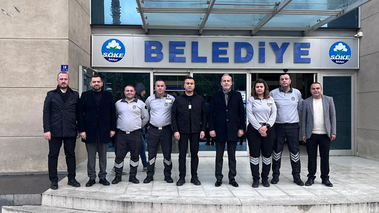 Hak-İş Aydın İl Temsilcisi Bülent Aksoy ve beraberindeki heyet, Söke Belediyesi’ni ziyaret etti. Ziyarette, belediye bünyesinde görev yapan tüm güvenlik görevlileri Hak-İş Konfederasyonu’na bağlı Öz Güvensen Sendikası’na üye oldu.