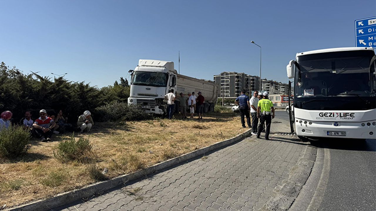 Kaza, Söke-Kuşadası Çevre Yolu üzerindeki kavşakta yaşandı. Edinilen bilgiye göre, seyir halindeyken freni tutmayan tır, aynı yönde ilerleyen gezi otobüsüne arkadan çarptı. Çarpmanın etkisiyle tır refüje çıkarken, otobüs ise yolda savruldu.