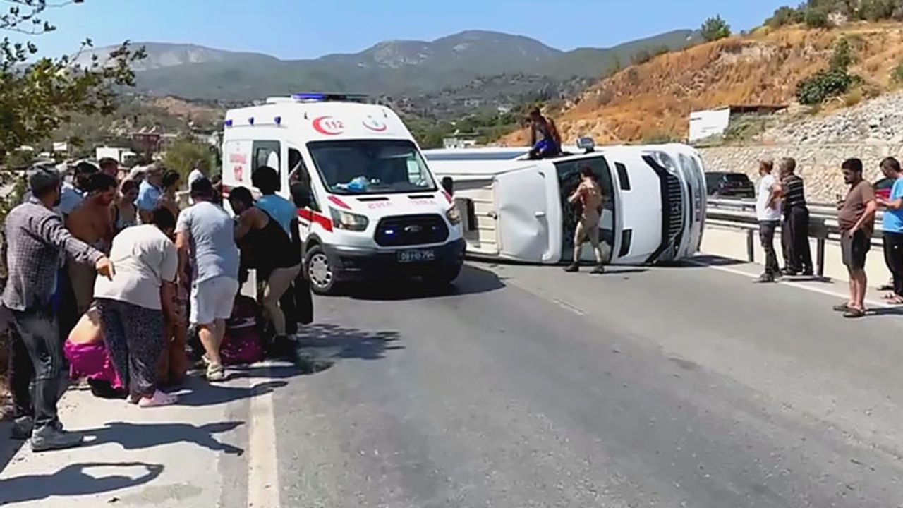Aydın'ın Söke ilçesinde turistleri taşıyan tur midibüsünün devrilmesi sonucu meydana gelen kazada ilk belirlemelere göre 7 kişi yaralandı.